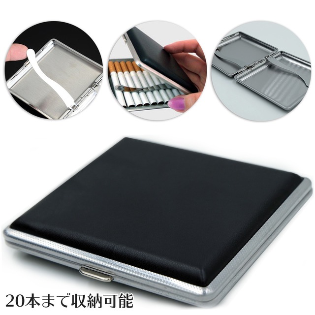 シガレットケース 20本まで収納可 シルバー ブラック レザー 金属 シンプル 革 黒 銀 手巻き メンズ レディース レギュラーサイズ たばこけーす 本数管理