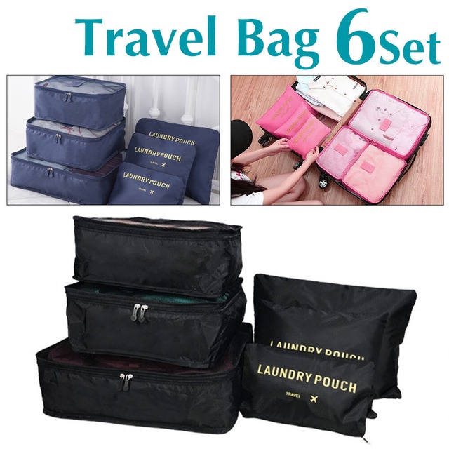 スッキリ収納 トラベルバッグ 6点セット ネットバッグ ランドリーバッグ ブラック ピンク ネイビー 衣類収納ポーチ 洗濯物 旅行用品 撥水素材 衣類 タオル 小分け 整理整頓 黒 紺 通気性