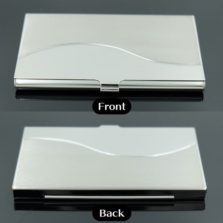 鏡面 名刺入れ ミラー付き 薄型 ウェーブライン 波型 ステンレス ビジネス カードケース シンプル スリム 金属 メタル シルバーカラー