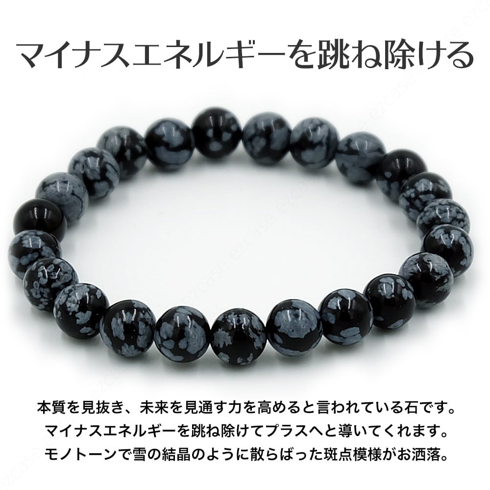 ブレスレット 8mm スノーフレーク オブシディアン 数珠 守護石 結晶 ロック ブラック グレー 灰色 黒色 メンズ レディース 黒曜石 おしゃれ