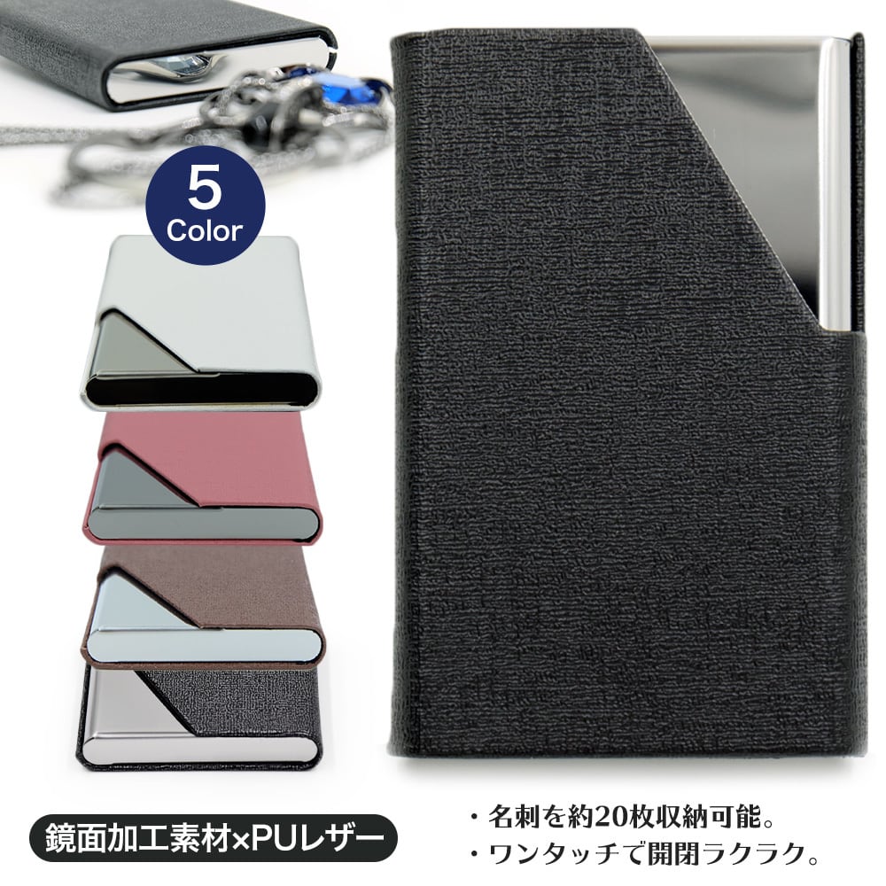 レザー調 カードケース 鏡面仕上げ ミラー 名刺入れ 鏡 メタル アルミ 銀 黒 白 茶 灰色 ピンク ブラック ホワイト ブラウン ダークグレー レディース メンズ ビジネス シンプル