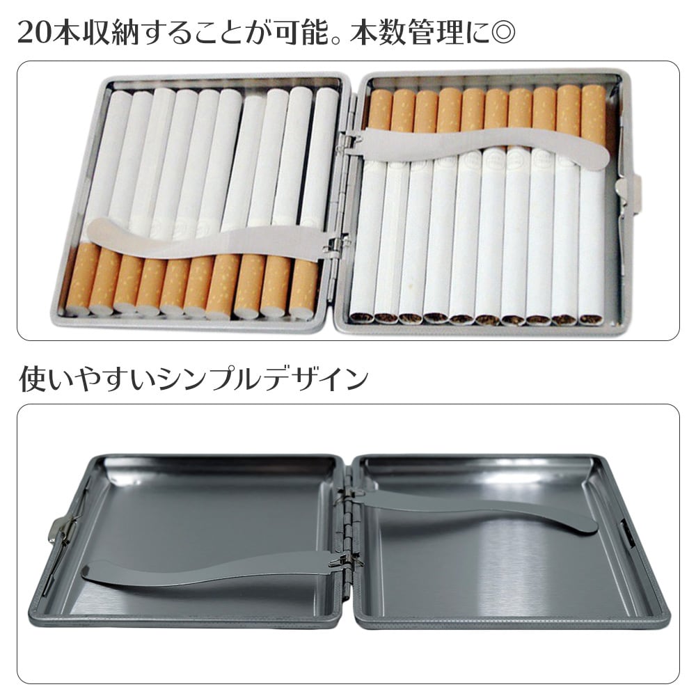 シガレットケース 20本まで収納可 シルバー ブラック レザー 金属 シンプル 革 黒 銀 手巻き メンズ レディース レギュラーサイズ たばこけーす 本数管理