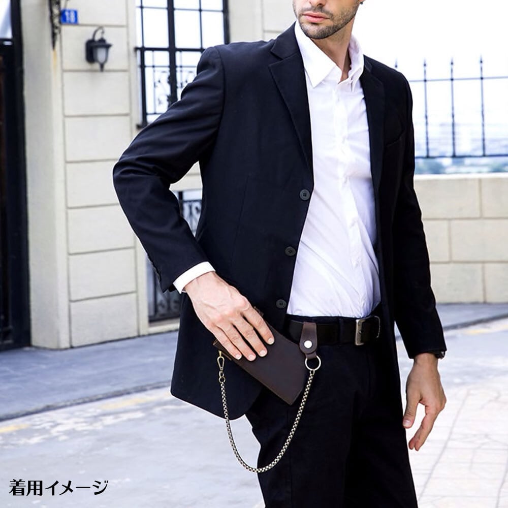 チェーン付き ロングウォレット バイカーウォレット ソフトレザー スナップボタン マグネット不使用 ICカード収納可 90年代 メンズ 男 ダークブラウン 茶色 さいふ 本革 長財布 小銭入れ