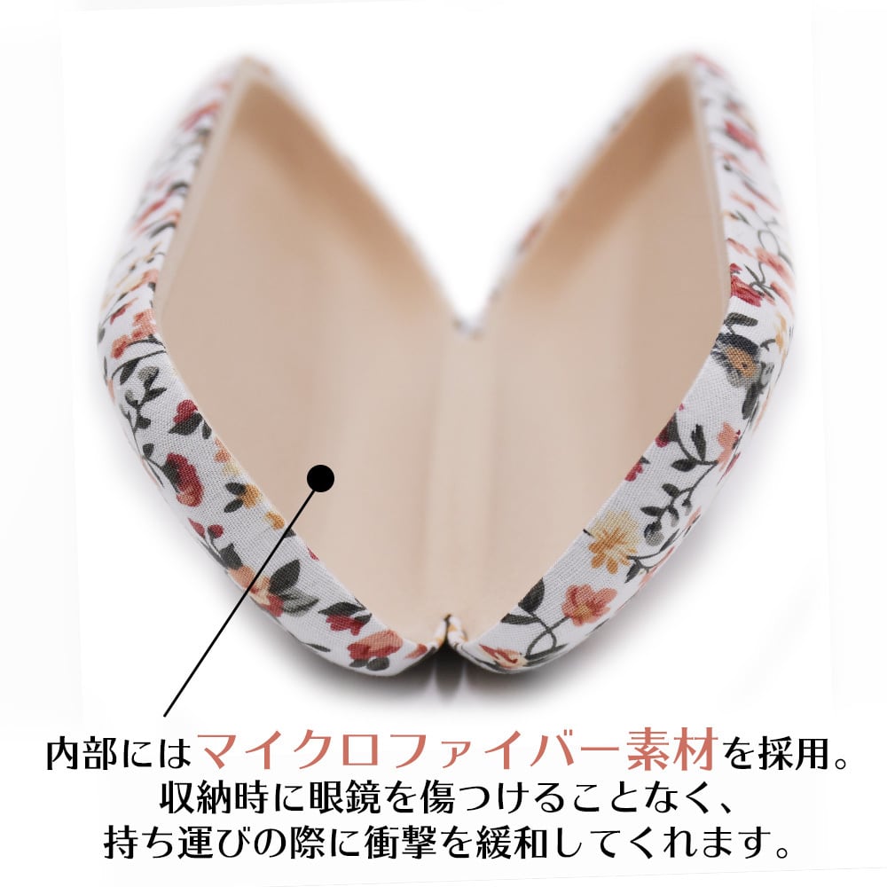 花柄 メガネケース おしゃれ 眼鏡入れ 華やか 花模様 綿 ハードケース ホワイト 白 ピンク 老眼鏡 留め具付き レディース めがねけーす オシャレ 女性 シンプル