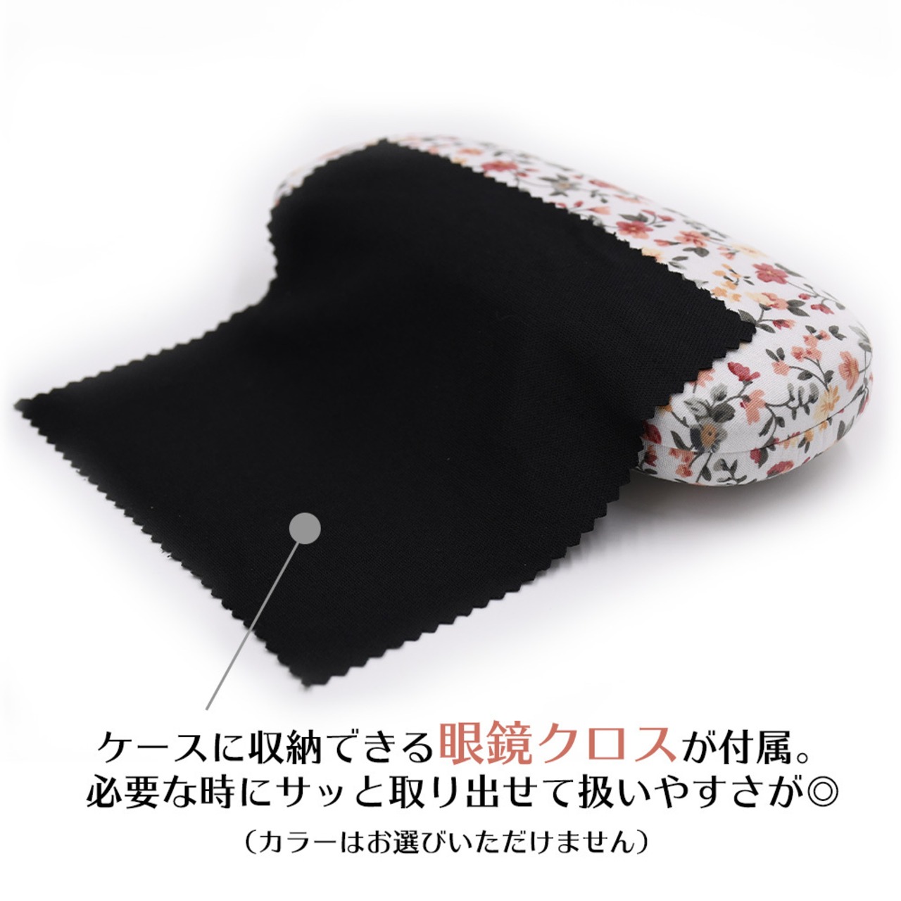 ケースに常備できる眼鏡クロス付き。(カラーはお選びいただけません)