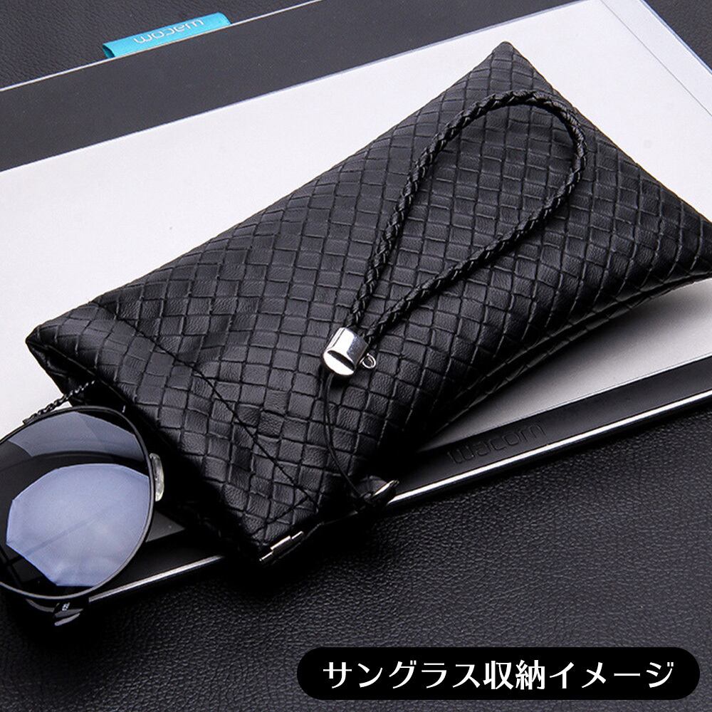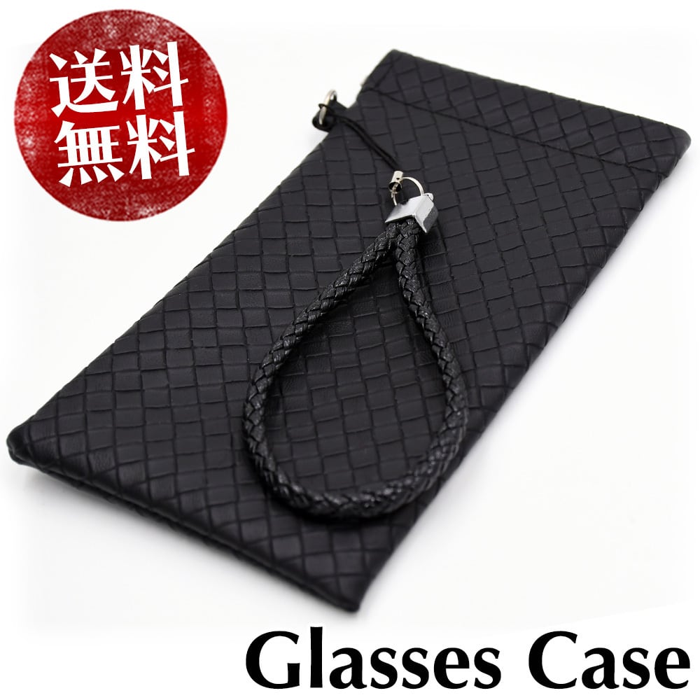 イントレチャート メガネケース ソフトレザー メッシュ編み 小物入れ ポーチ デザイン ブラック 黒 男女 おしゃれ 眼鏡入れ 薄型 スリム ケース サングラス 老眼鏡 メンズ レディース めがね けーす オシャレ シンプル