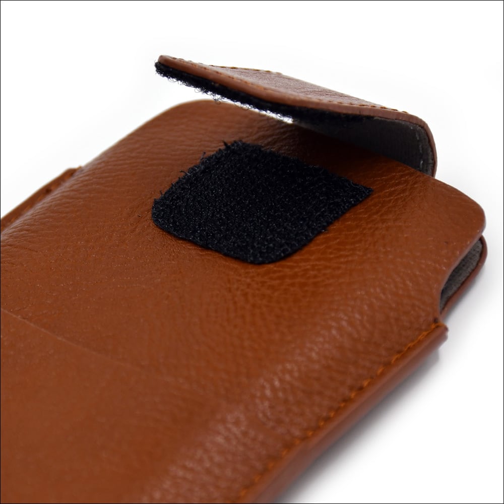 ベルトに固定して、安定感のある腰付けが可能なレザー製スマホホルダーです。