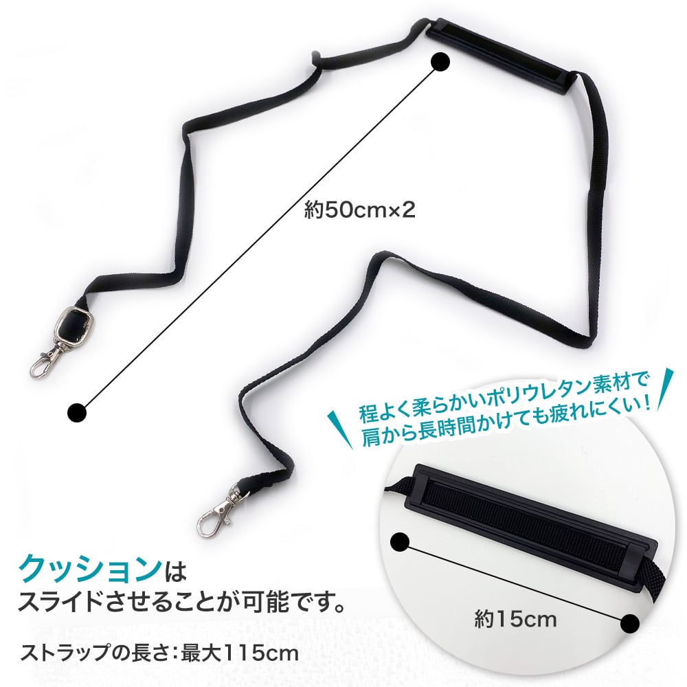 ストラップの長さ:約50cm×2、約15cm(クッション) ※最大115cm
