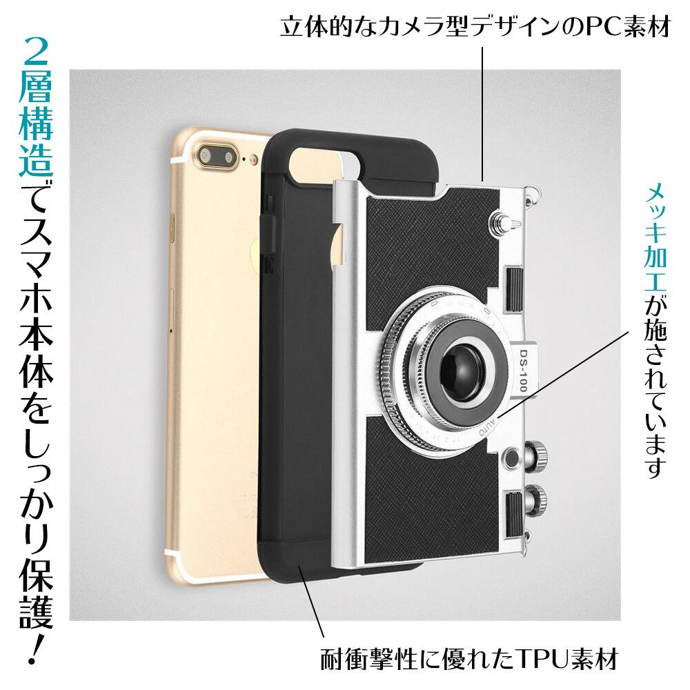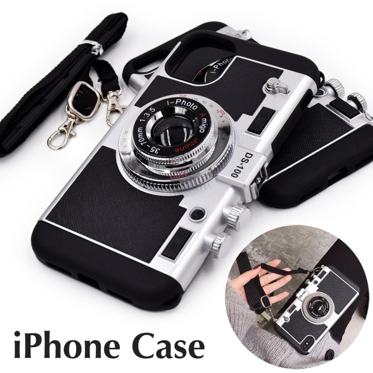ストラップ付き カメラ型 アイフォン ケース 肩掛け可能 ブラック シルバー ストラップ付 iPhone 16 15 14 13 promax 12 16 15 14 13 立体的 インスタ映え メンズ レディース スマホ カバー