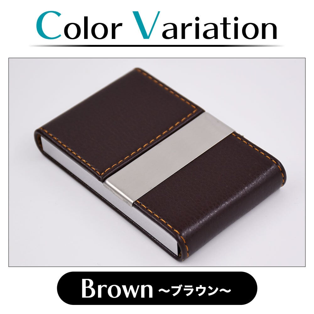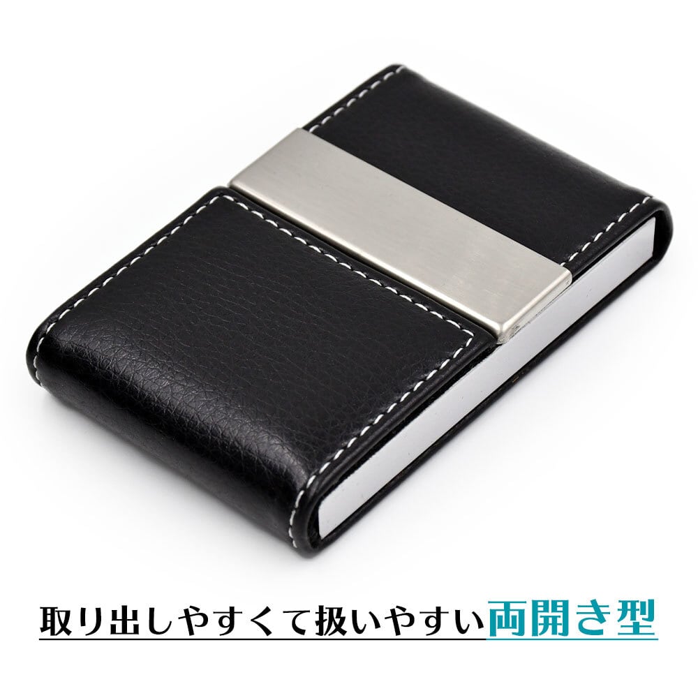 レザー 名刺入れ 両開き 鏡面仕上げ アルミ ブラック ブラウン 黒 茶色 シルバー 丈夫 カードケース 名刺収納 ミラー 鏡 金属製 メタリック 黒 メンズ レディース 男女 ビジネス シンプル フォーマル