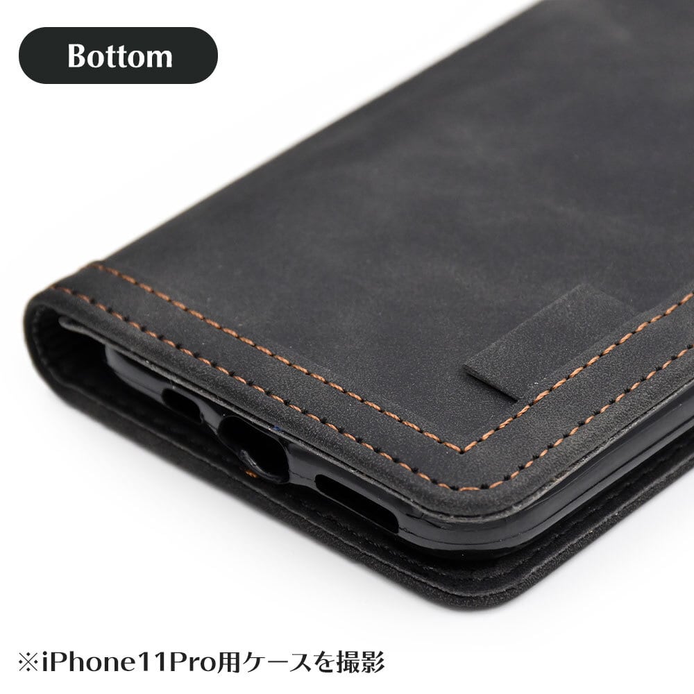 触り心地の良いスエード調レザーの手帳型ケース。