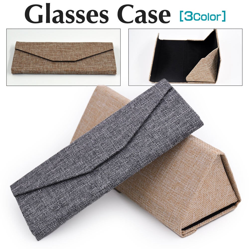 キャンバス 折りたたみ メガネケース ベージュ グレー 薄型 帆布生地 眼鏡ケース めがね おしゃれ スリム 三角 折り畳み 眼鏡入れ 男女 メンズ レディース サングラス