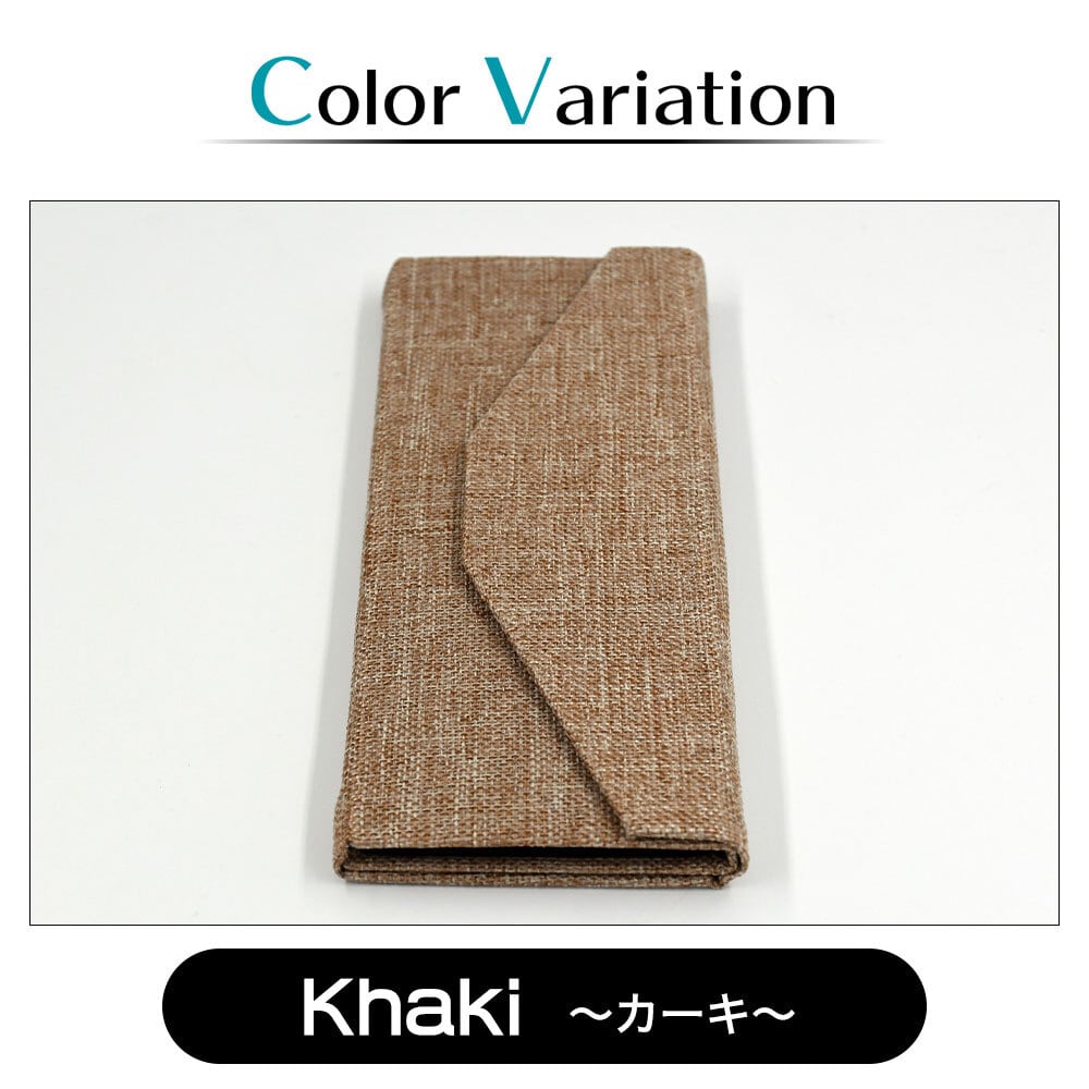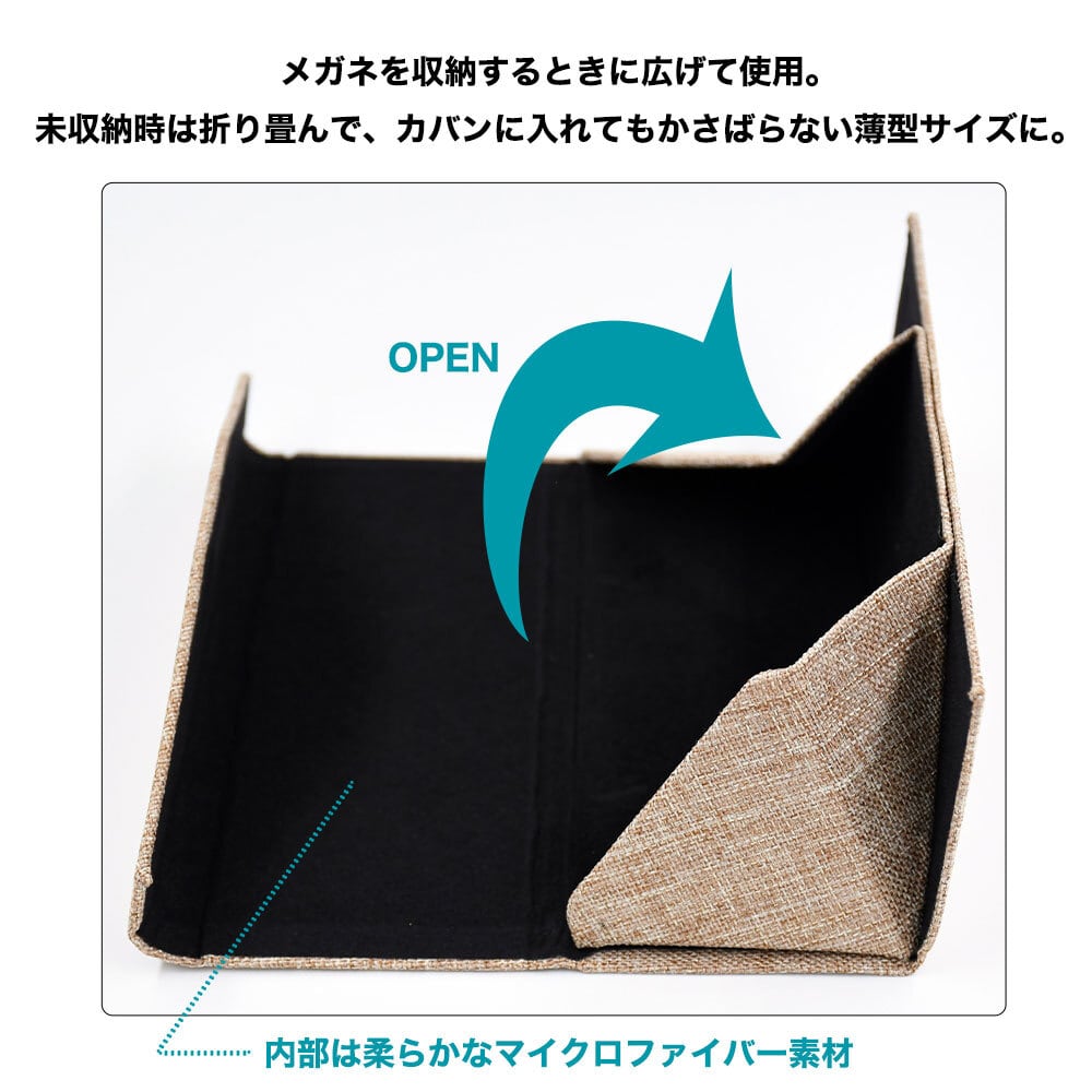 肌触りの良いキャンバス素材の折りたたみ型のメガネケースです。