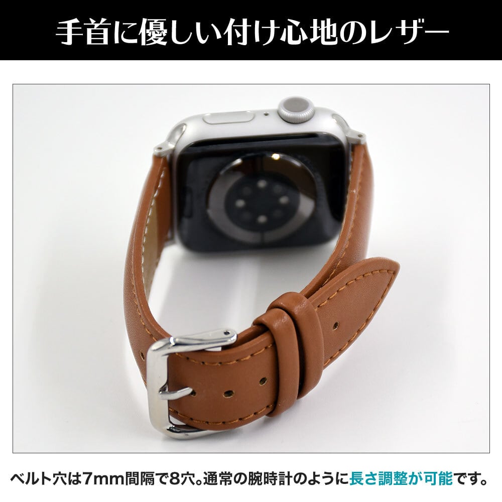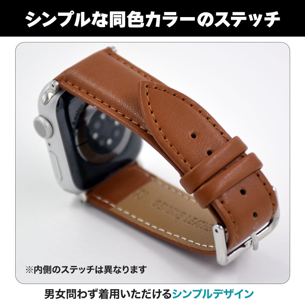 Apple Watch レザー バンド ライトブラウン 同色ステッチ シンプル アップルウォッチ 10 9 8 7 6 5 4 3 2 1 SE ultra2 本革 茶色 腕時計ベルト 38mm 40mm 41mm 42mm 44mm 45mm 男女 レディース メンズ