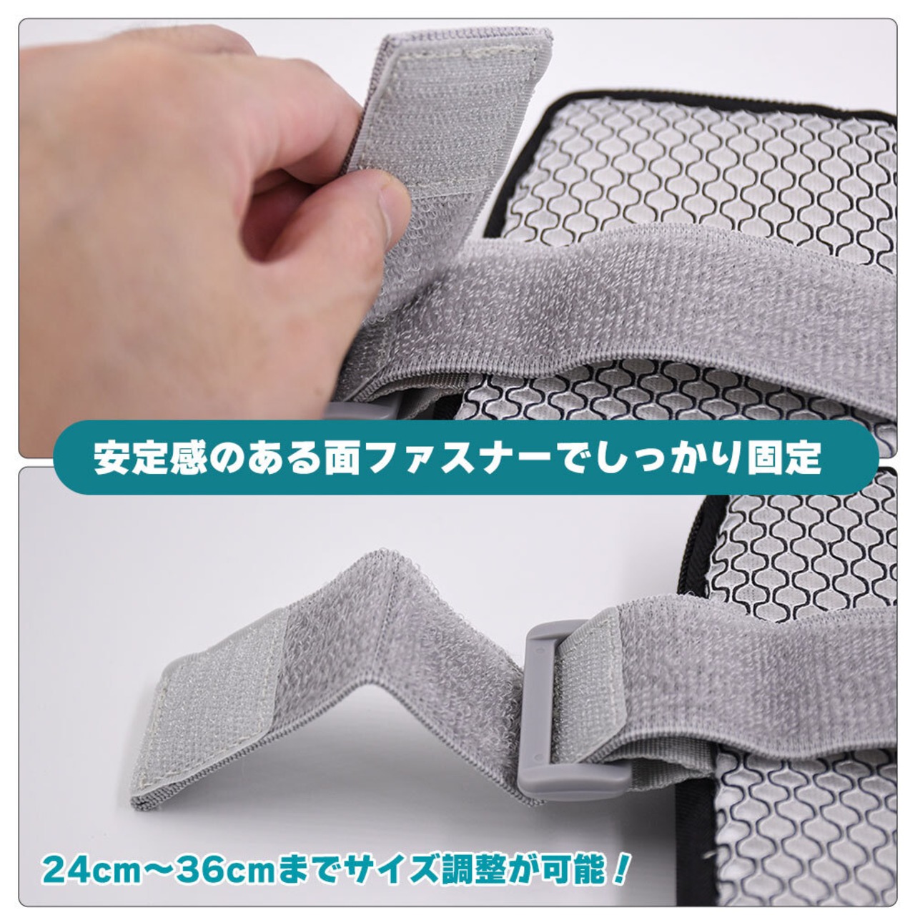 腕に接する部分は通気性・クッション性に優れたメッシュ素材を使用。