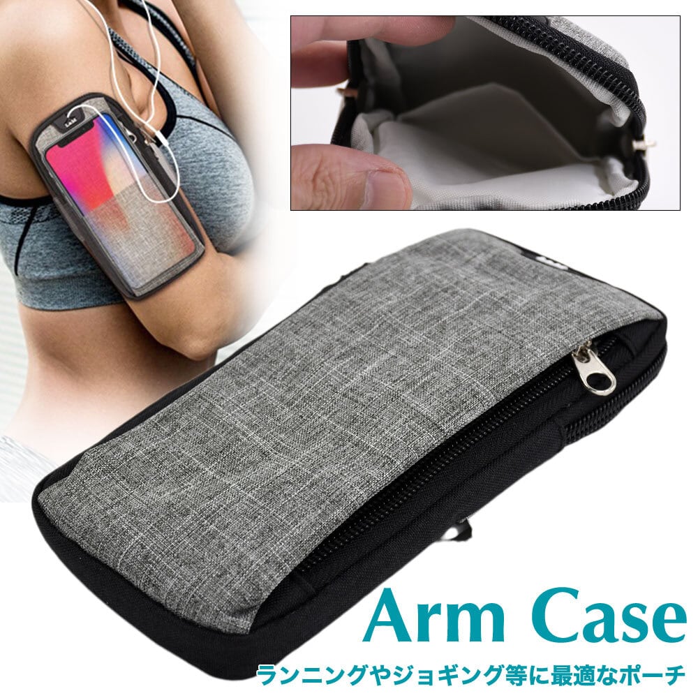 アームポーチ サイドジッパー付き 各種スマホ対応 腕につける ミニバッグ グレー 通気性抜群 撥水 腕バンドケース スポーツ ランニング ジョギング 複数ポケット レディース メンズ 運動 持ち歩き
