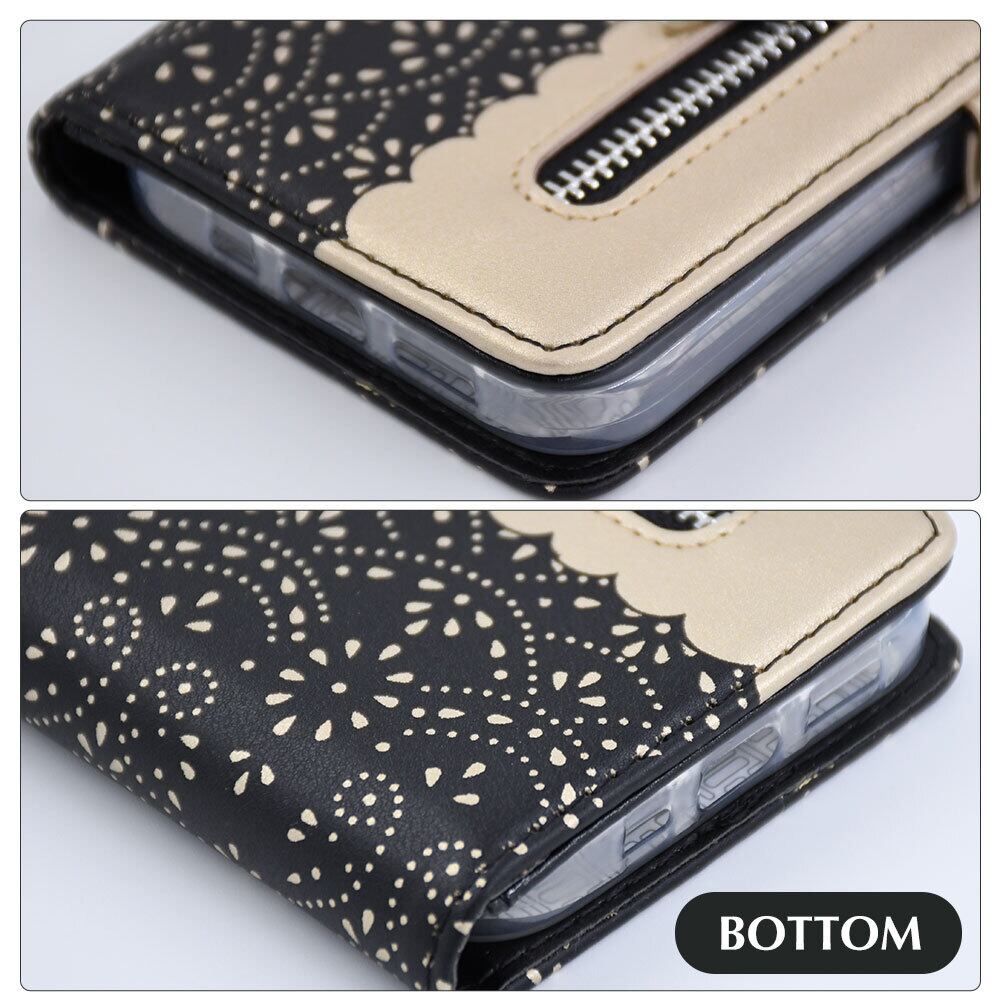 【在庫限り】 レザー 手帳型 iPhone ケース ポケット付き リーフ リボン ストラップ付 小銭収納可 アイフォン カバー ブラック ベージュ iphone 13 ProMax 12 pro 11 pro スタンド 名刺収納可 横置き可 革 黒 レディース