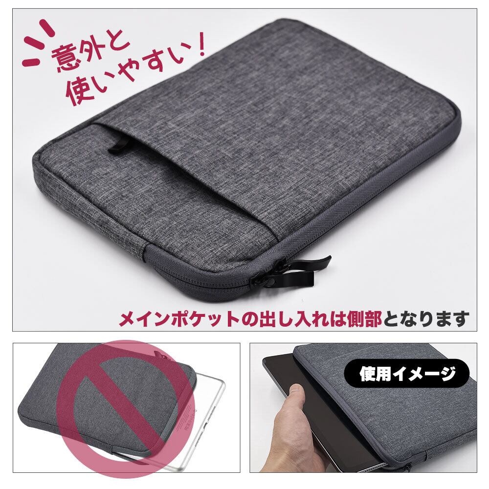 ポケット付き iPad mini ケース キャンバス スリーブ ダーク グレー ipad 7 6 5 4 Kindle Fire 8 kobo 小物入れ ポーチ ペン入れ シンプル 綿 帆布 丈夫 アイパッド ミニ 収納 あいぱっど けーす