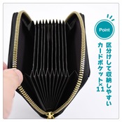 カードポケットx11、複数の名刺やお札などを収納可能。