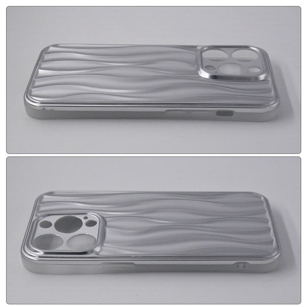 ドレープ iphoneケース 波型 銀色 iphone 14 ProMax 14 13 12シルバー ストラップホール付き 湾曲 エレガント シンプル アイフォンケース うねうね スマホカバー あいふぉんけーす