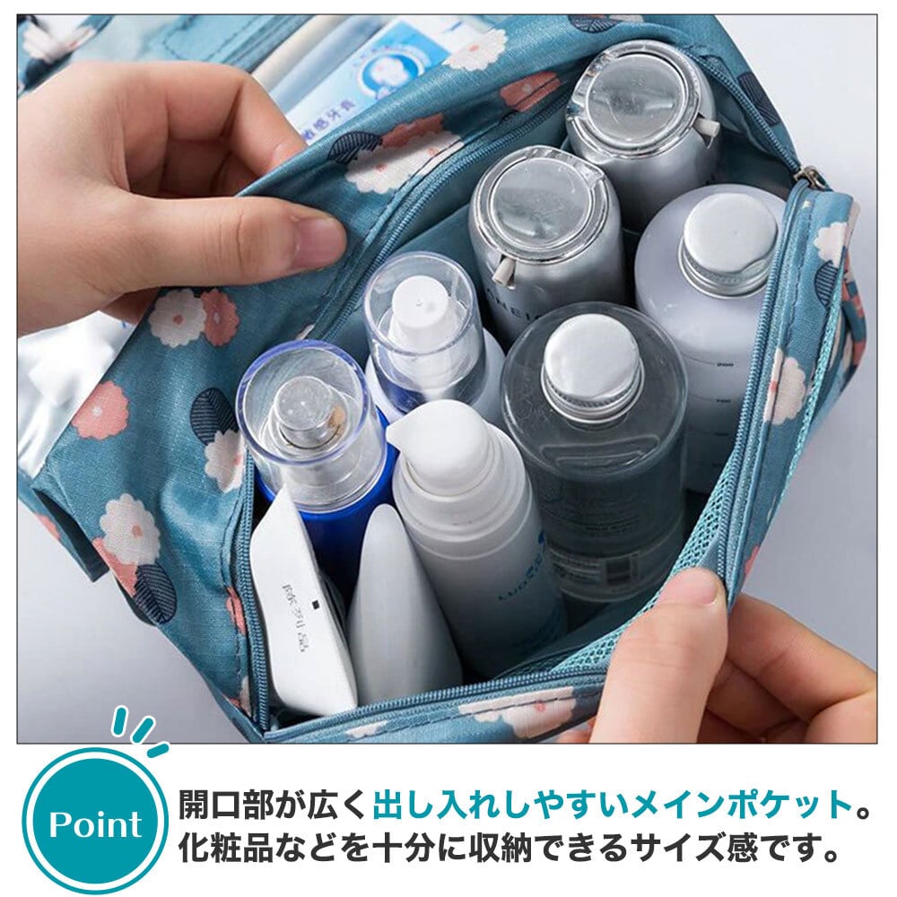 収納ポケット多数で小分け収納がしやすく、旅行先での使用・持ち運びに重宝します。