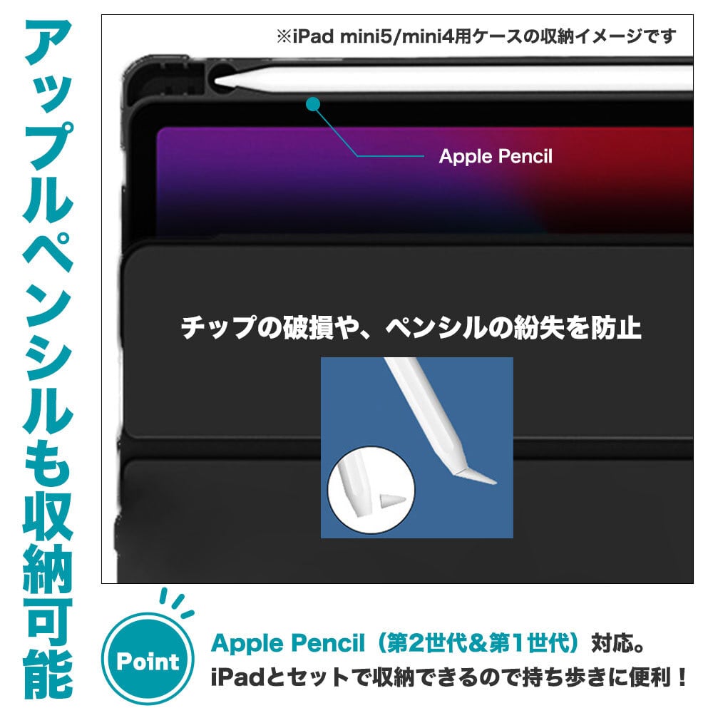 アップルペンシル収納可 軽量 iPadケース ブラック 横置き 平置き 薄型 ipad mini7 mini6 mini5 mini4 オートスリープ対応 スタンド機能 黒 アイパッド ミニ カバー