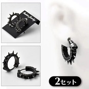 2セット スカル フープピアス 棘 ニードル 中折れ式 黒 銀 ヴィンテージ感 両耳セット ブラック シルバー 2個1組 ギフト ユニセックス メンズ レディース ロック パンク 男女 アクセサリー