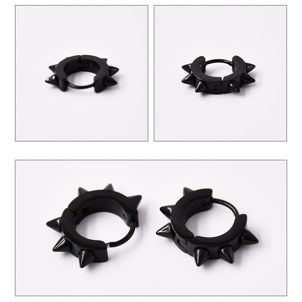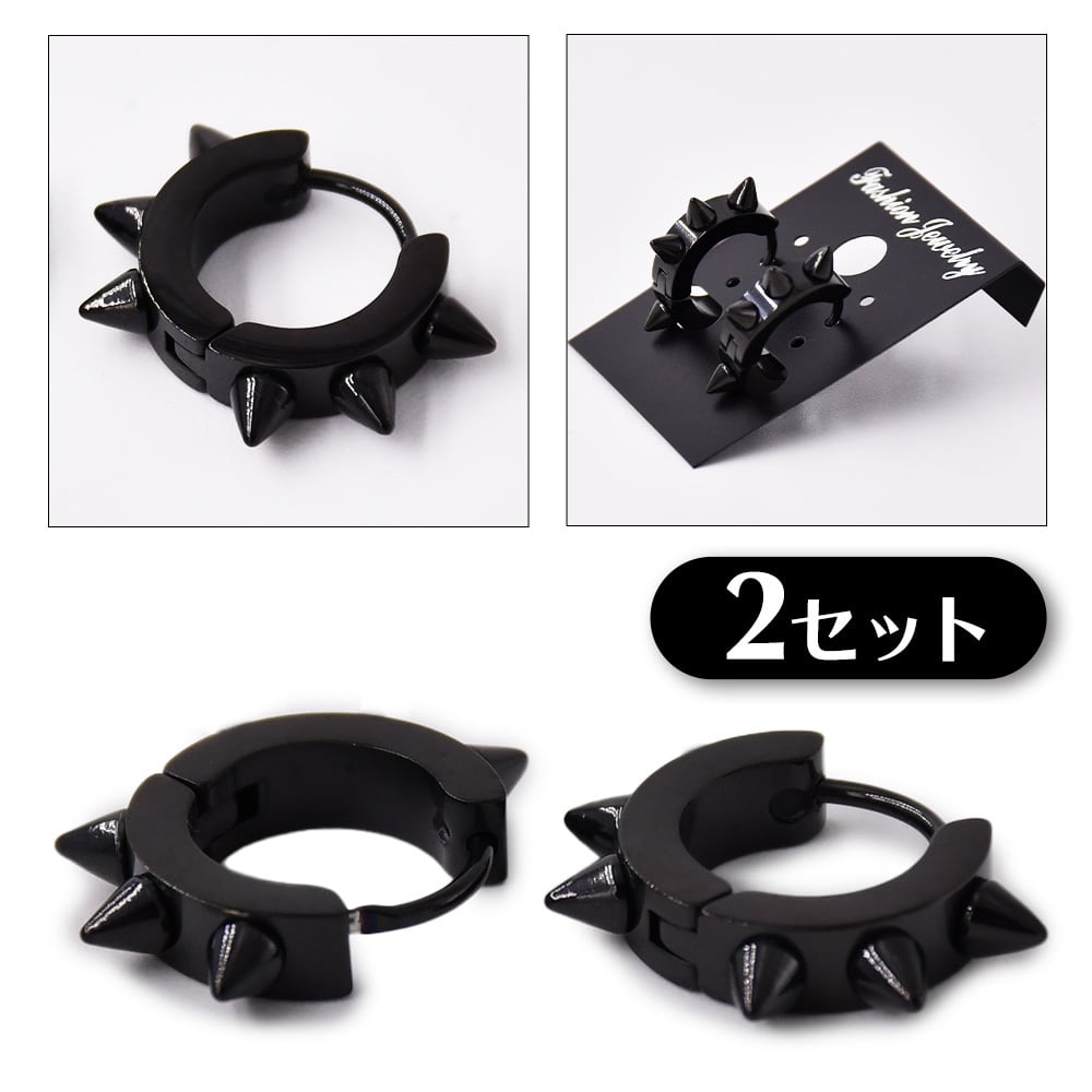 2セット フープピアス ニードル ブラック パンク 両耳セット 棘 ステンレス 黒 2個1組 ロック ギフト ユニセックス メンズ レディース カジュアル 男女