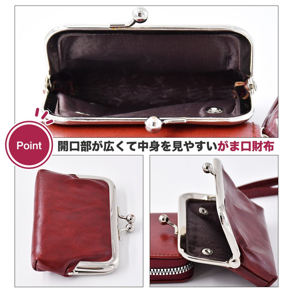 開口部が広くて中身を見やすいがま口財布。小銭やお札などが十分に入ります。