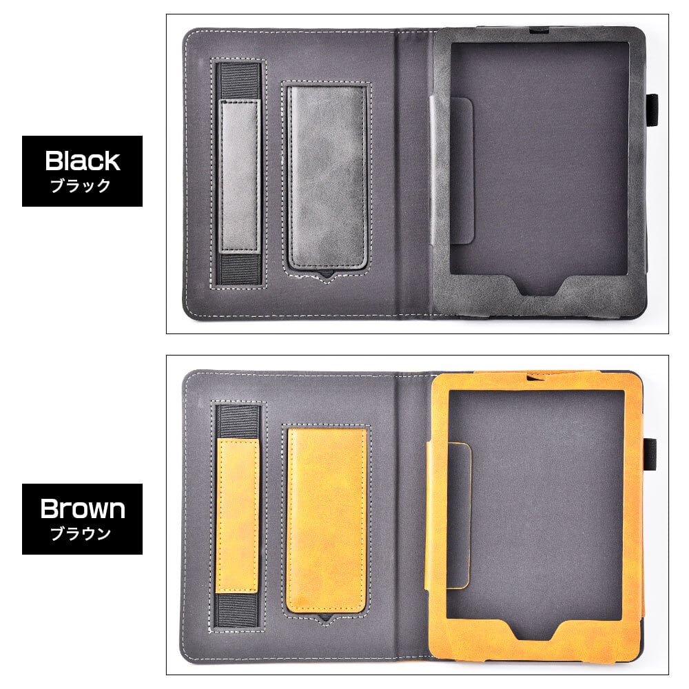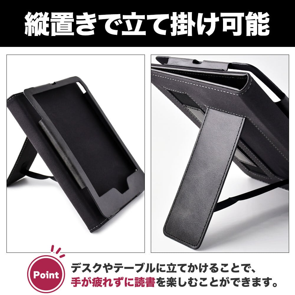 レザー キンドルペーパーホワイト ケース ハンドストラップ付き 縦置き 立て掛け可 kindle paperwhite 11 5 ブラック イエローブラウン オートスリープ対応 スタンド機能 液晶保護 ブック型カバー ペン差し 落下防止 革 黒