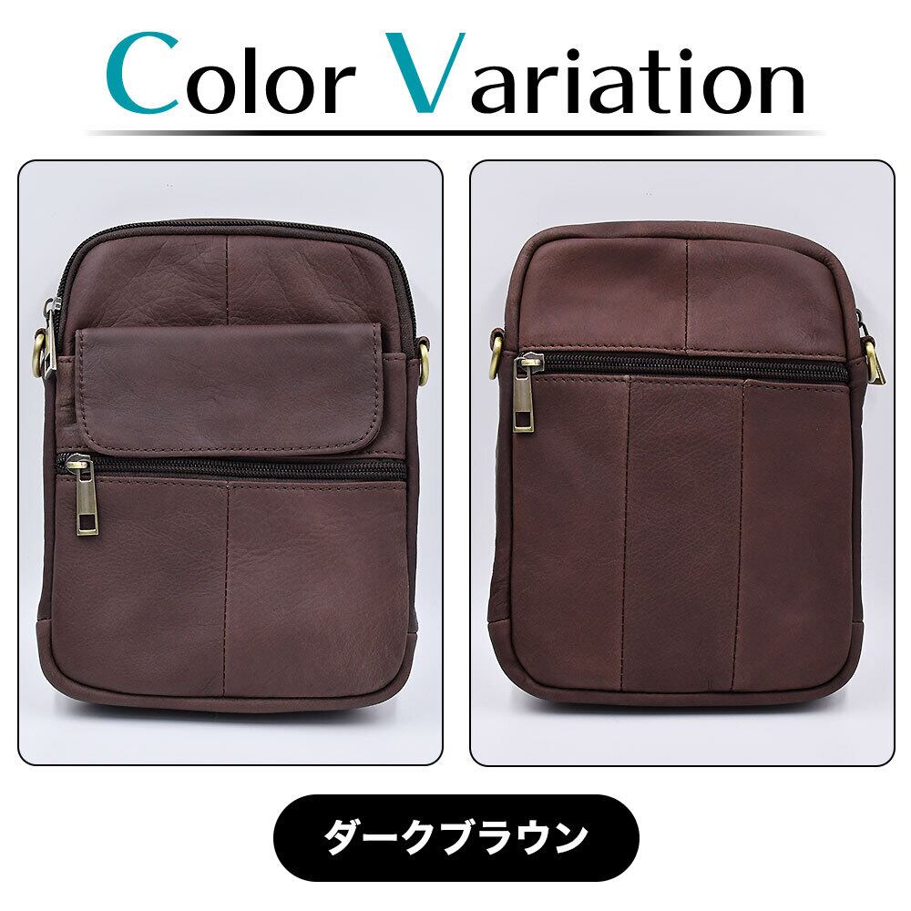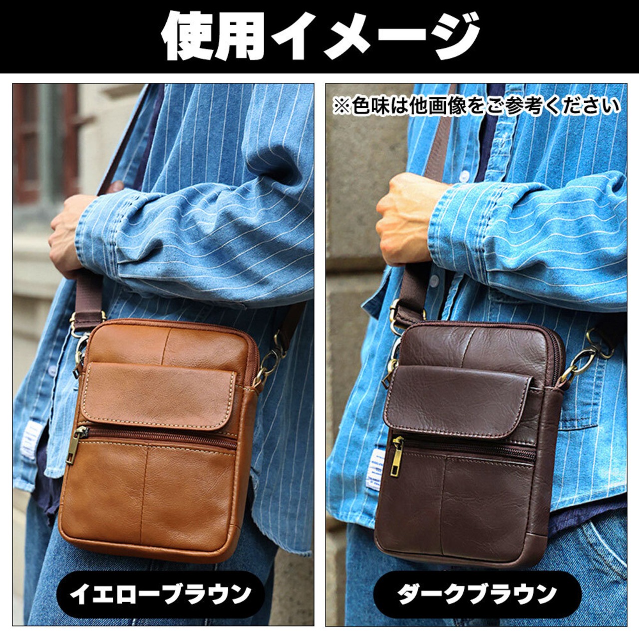 レザー サコッシュ ショルダーバッグ 肩がけ 鞄 小分けポケット付き 肩掛け かばん メンズ レディース コンパクト スマホ ミニバッグ 本革 ブラウン ダーク イエロー キャメル