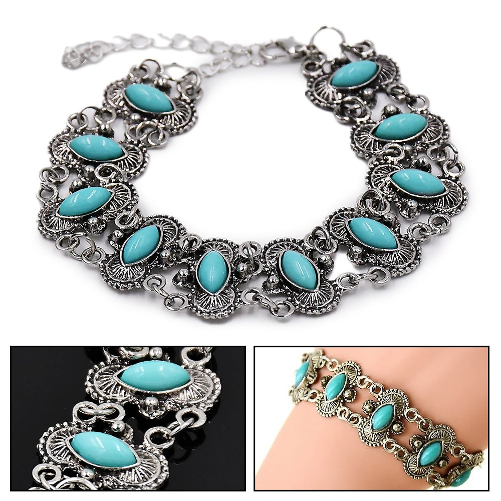 エスニック ブレスレット チェーン ターコイズ シルバー ブルー 銀 青 腕輪 天然石 爽やか ナチュラル 守護石 お守り トルコ石 春夏 アクセサリー ボヘミアン レディース ユニセックス