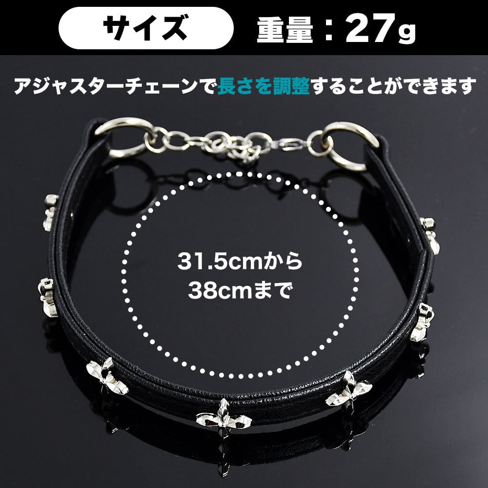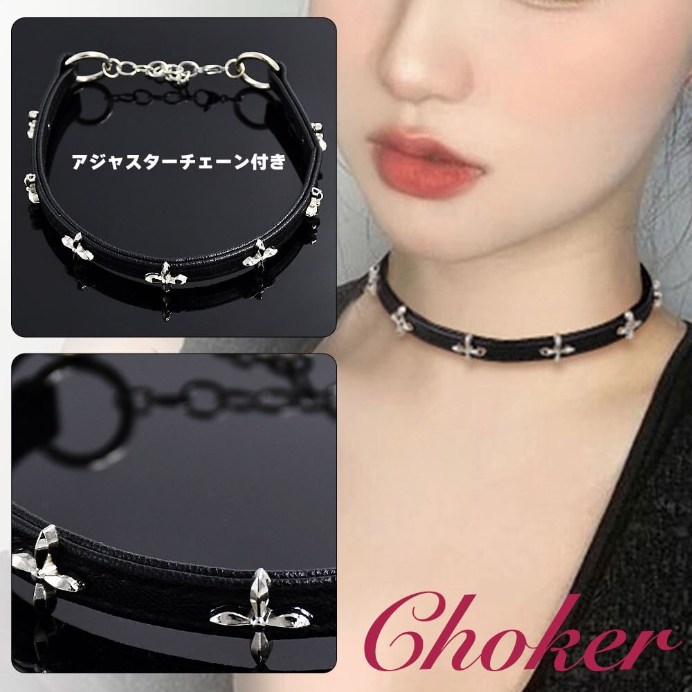 ブラック チョーカー 十字架 レザー ネックレス サイズ調整可 首輪 短い首飾り かわいい パンク ロック レディース ブレスレット 黒 アクセサリー 女性