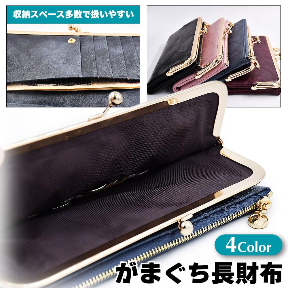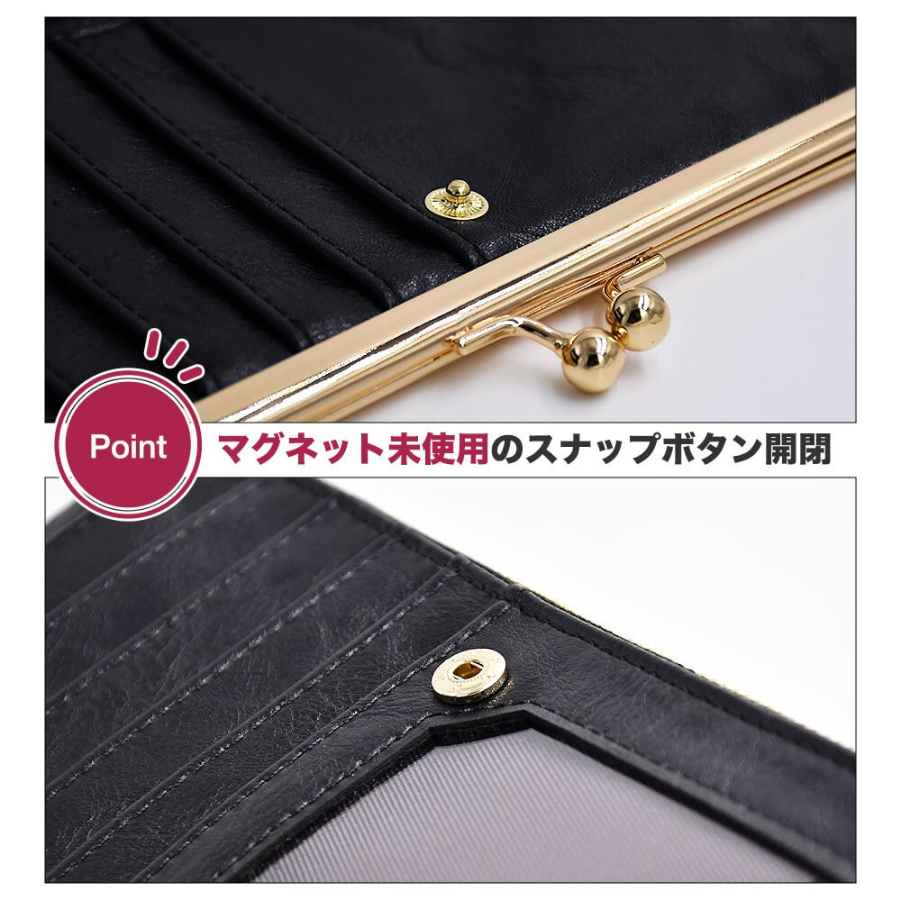 がま口 長財布 レザー レディース 黒 朱色 紺 無地 革 多収納 マグネット不使用 ブラック ネイビー ピンク ワインレッド がまぐち ロングウォレット 蝦蟇口 シンプル ガマグチ