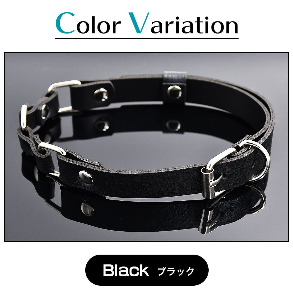 2way チョーカー ブレスレット ブラック レザー 首輪 サイズ調整可 パンク ロック シンプル 黒 ネックレス メタルパーツ アクセサリー