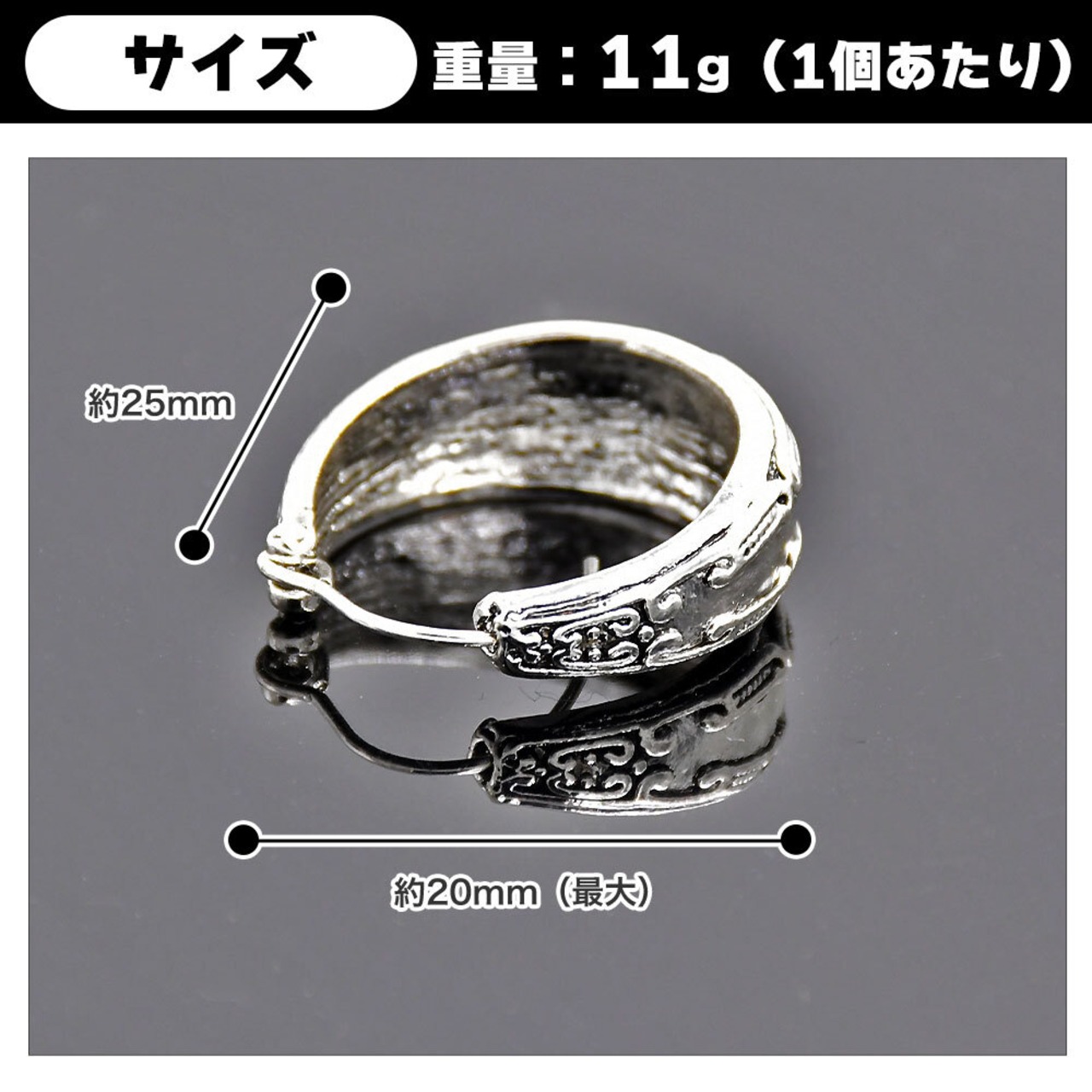 ラウンドピアス 2個セット カービング エスニック ボヘミアン フープ式 両耳セット シルバー 銀色 2個1組 ギフト オシャレ 耳飾り アクセサリー