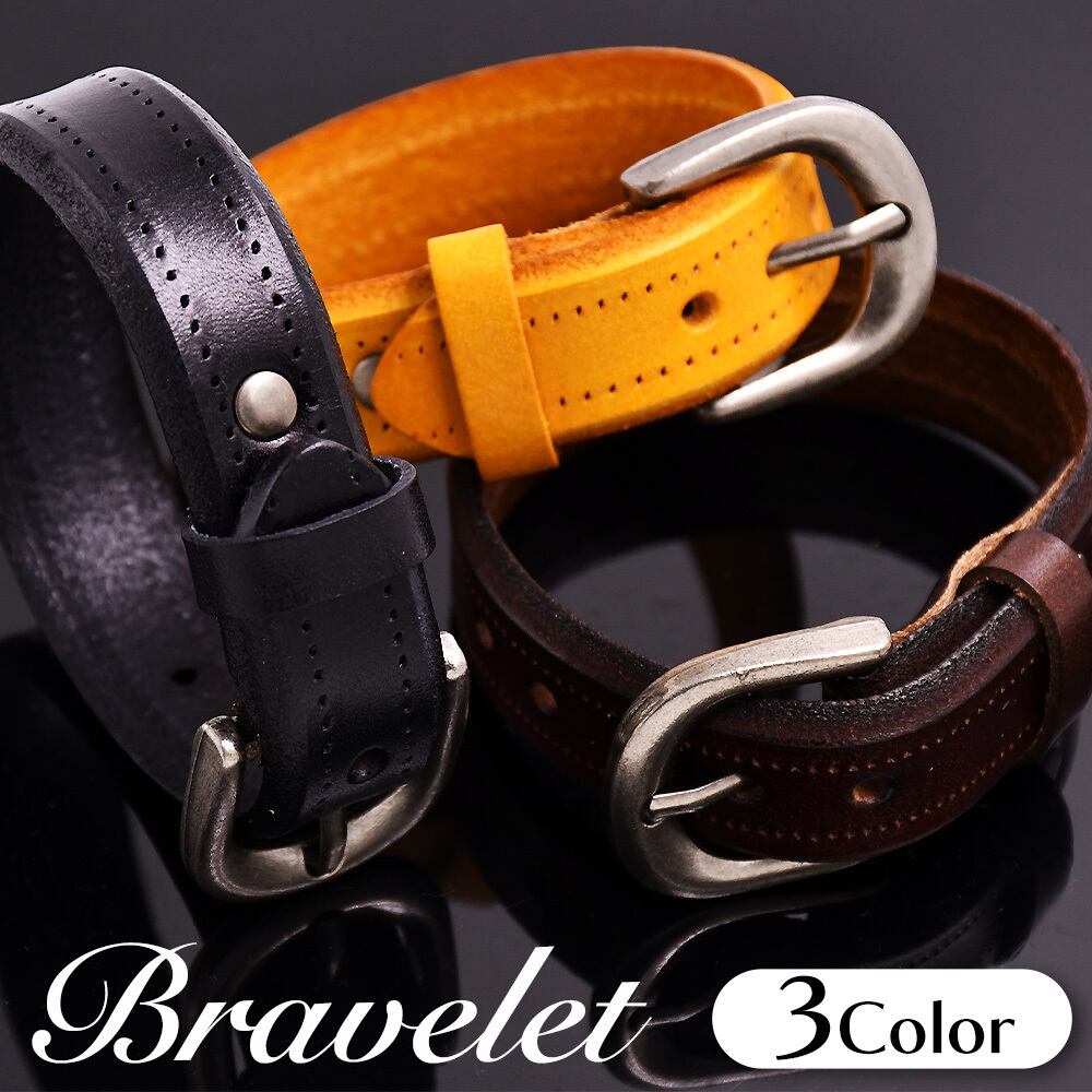 レザー ブレスレット ブラック ブラウン イエロー カジュアル シンプル 牛革 金属 黒 黄 茶色 アンティーク調 アクセサリー ユニセックス レディース メンズ