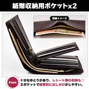 十分なゆとりがある紙幣ポケットにはレシート類の収納も◎