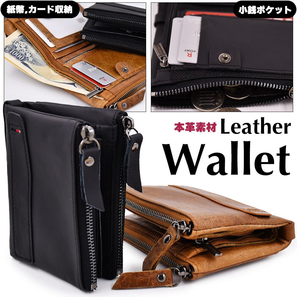 レザー 二つ折り財布 本革 多ポケット ブラック ブラウン メンズ ウォレット シンプル さいふ 高見え 軽い 名刺収納 紙幣収納 硬貨収納 黒 茶 2つ折り