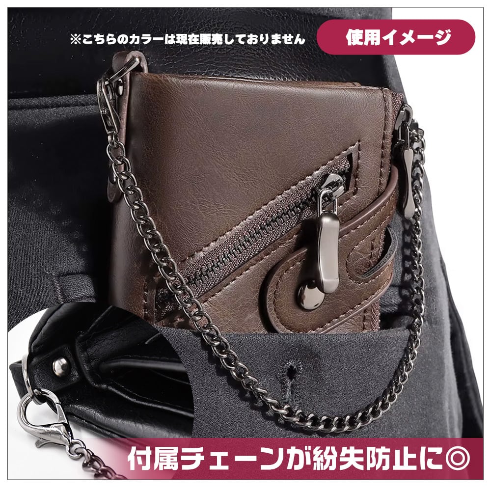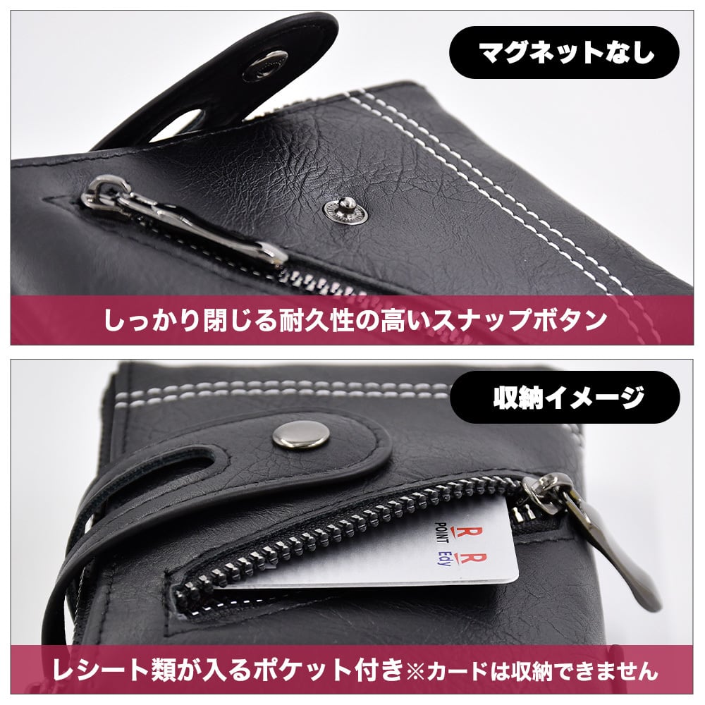 レザー 二つ折り財布 黒 ウォレットチェーン付き ブラック 2つ折り メンズ 財布 ロック パンク マグネットなし ポケット多数 カジュアル さいふ 軽い ミニSD収納 紙幣 コイン収納