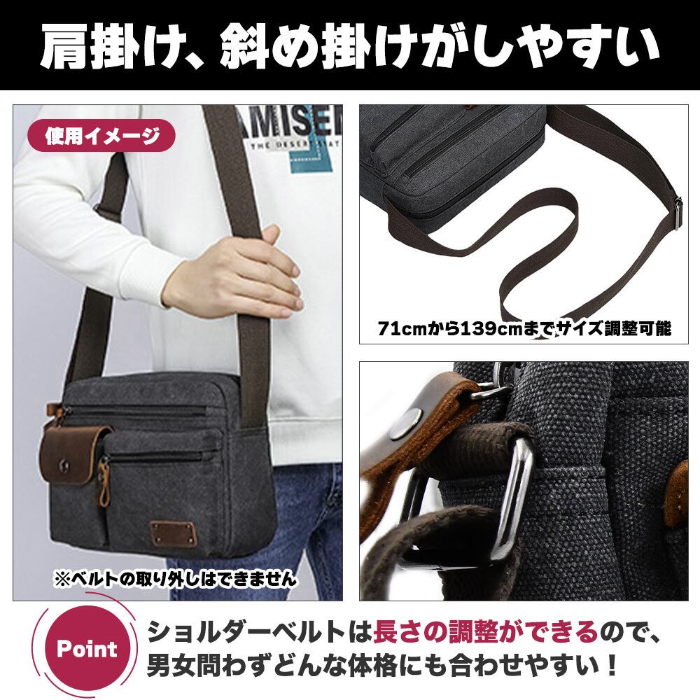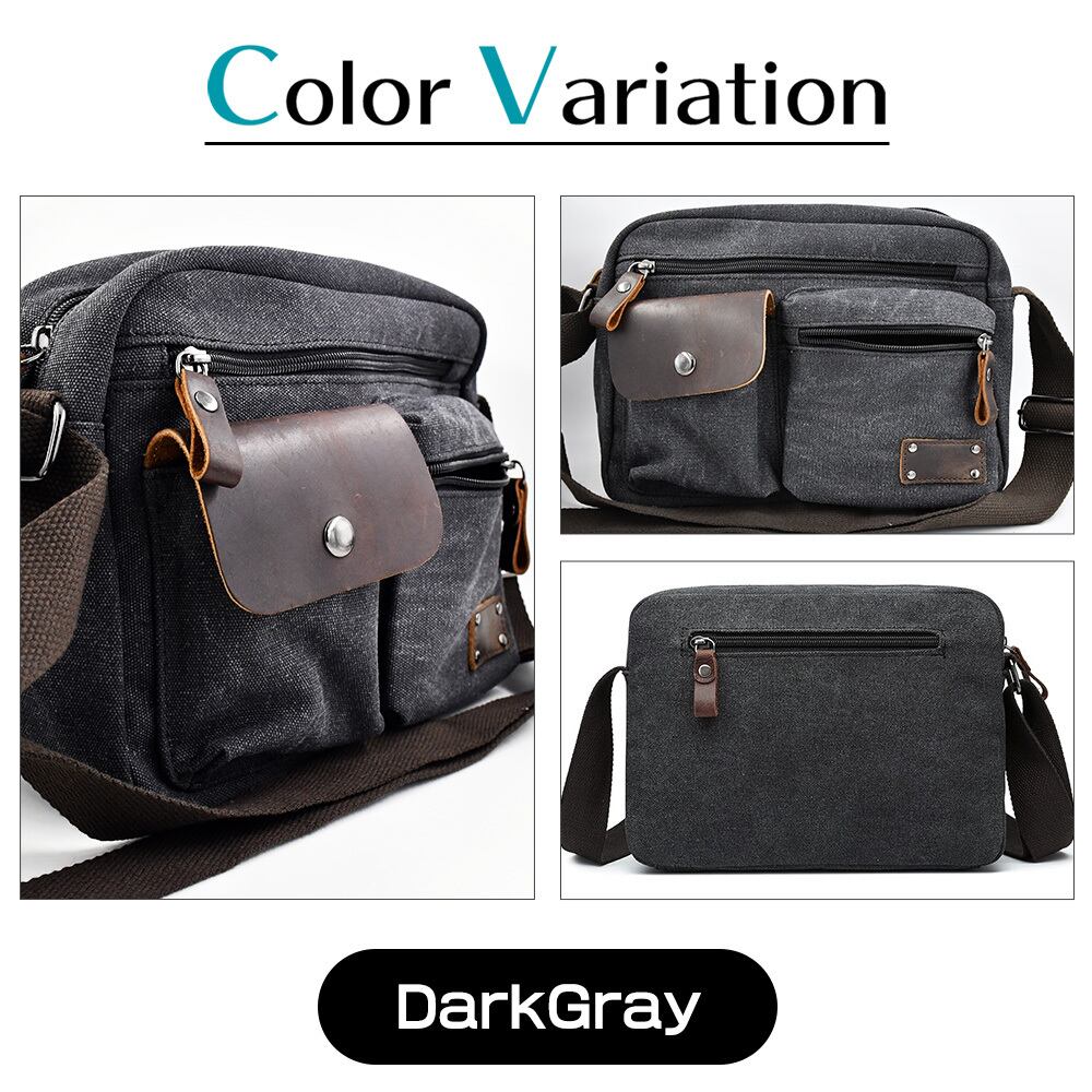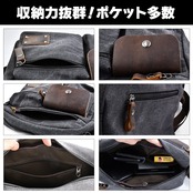 帆布 レザー メッセンジャーバッグ ポケット多数 キャンバス ショルダー バッグ 肩掛け 斜めがけ B5サイズ タブレット対応 鞄 多収納 かばん メンズ レディース カバン ダークグレー ブラック