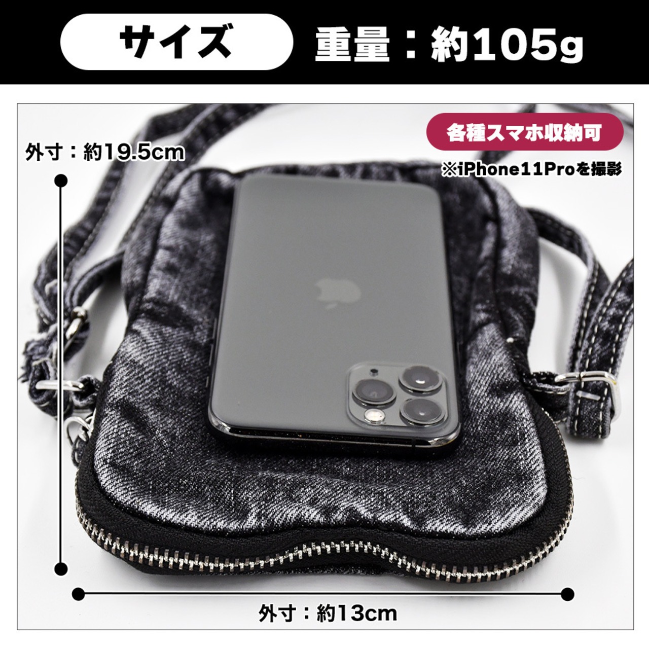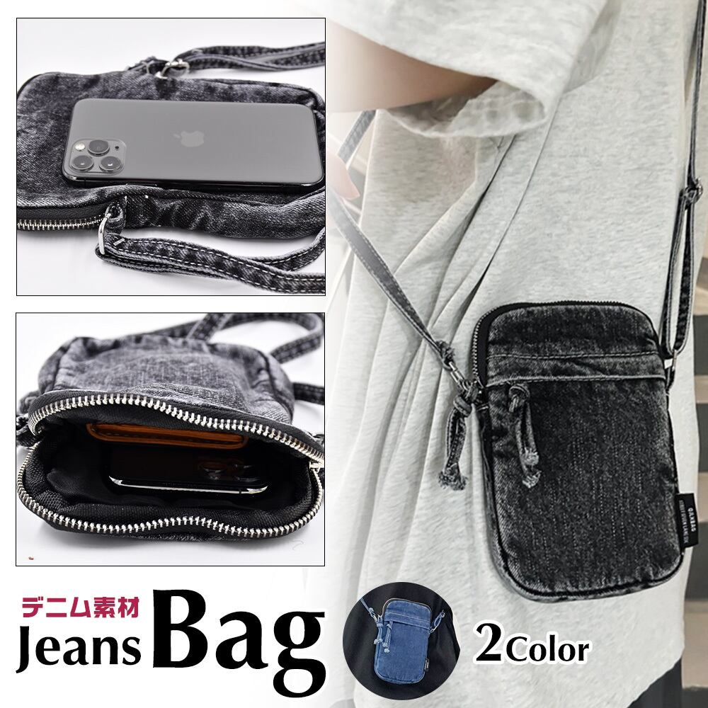 デニム サコッシュ 帆布 ブラック インディゴ ショルダーバッグ 黒 ジーンズ 軽い カバン カジュアル コンパクト ポーチ ポシェット レディース メンズ 男女 かばん 鞄 カジュアル