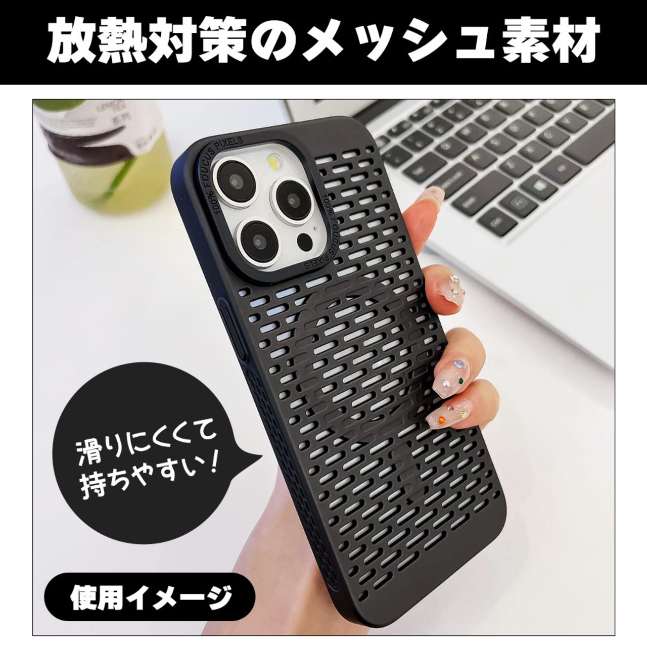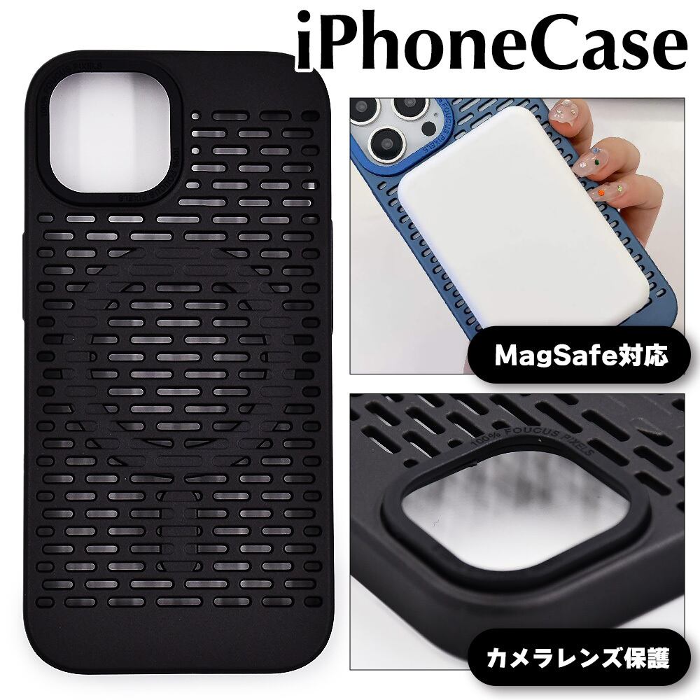 アイフォン ケース MagSafe対応 メッシュ加工 放熱仕様 ブラック ワイヤレス充電可 指紋つかない iphone 16 15 pro max 14 13 16 15 14 13 あいふぉん けーす 軽い レンズ保護 耐衝撃 防滑 防塵 男女 スマホ カバー