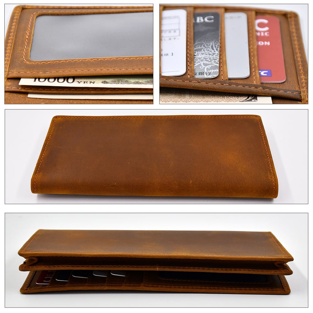 スムースレザー 長財布 本革 無地 ロングウォレット ボタンなし シンプル マチあり 収納力抜群 ヴィンテージ感 マグネット不使用 ICカード収納可 メンズ 男女 ブラウン 茶色 さいふ