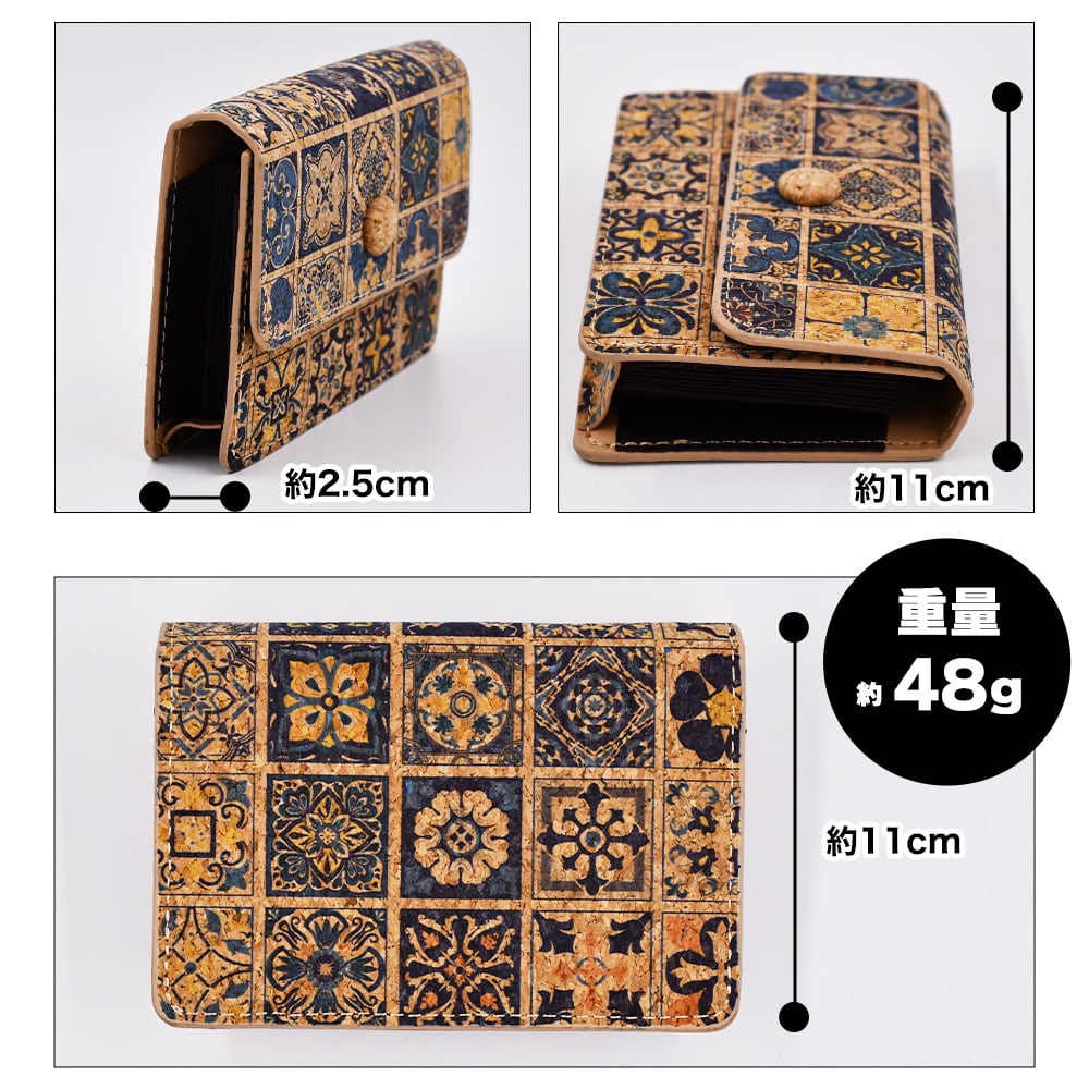 エスニック 名刺入れ コルク 蛇腹ポケット 区分収納 マンダラ カードケース 扇形 ベージュ ブルー マグネット不使用 青 クレカ収納 曼荼羅 レディース メンズ カジュアル シンプル