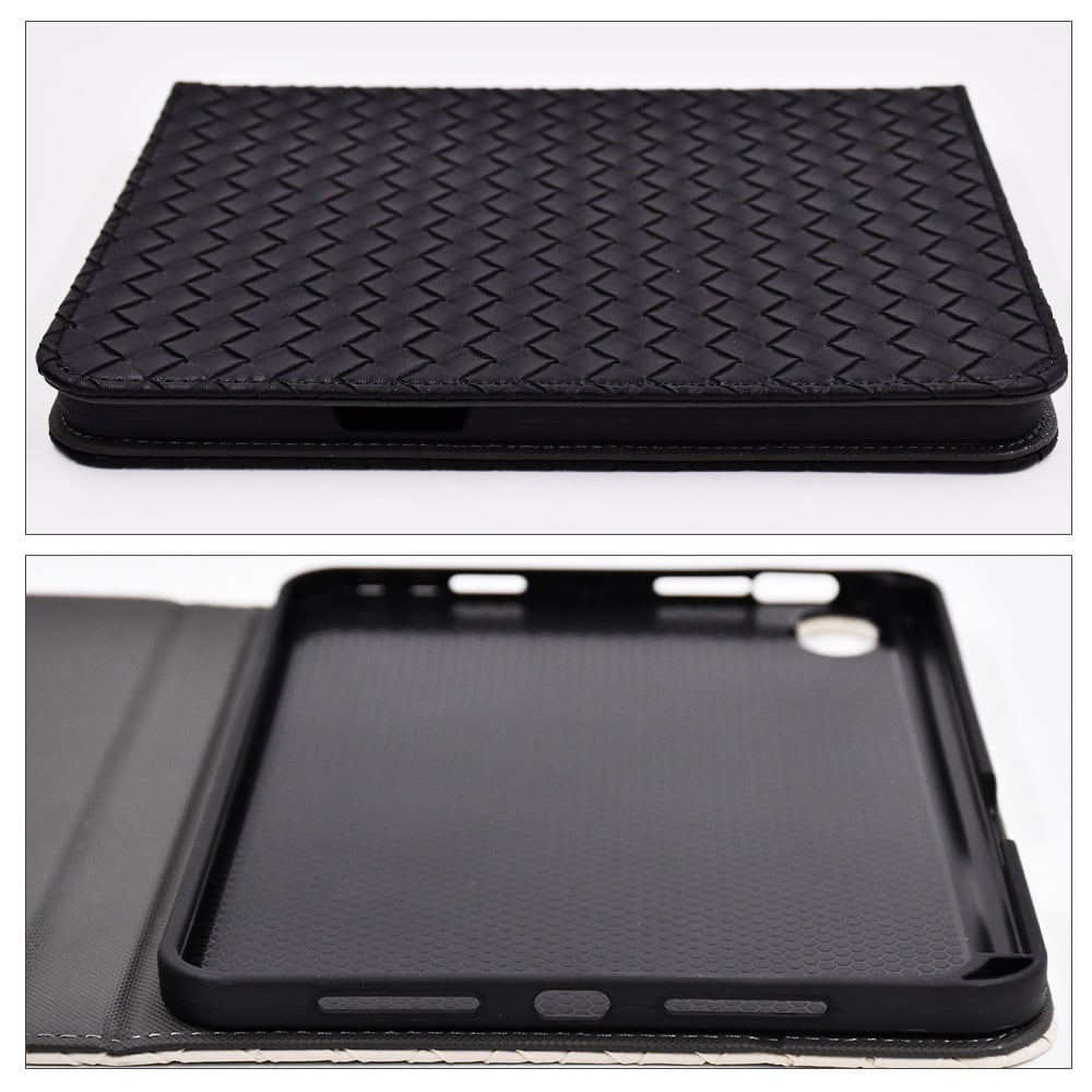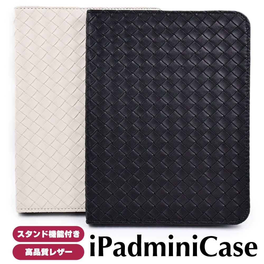 iPad mini 7 6 ケース イントレチャート 編み込み レザー ipad ブラック アイボリー 横置き可 スタンド機能 耐衝撃 オートスリープ対応 黒 革 白 アイパッド ミニ カバー