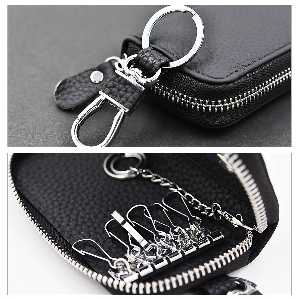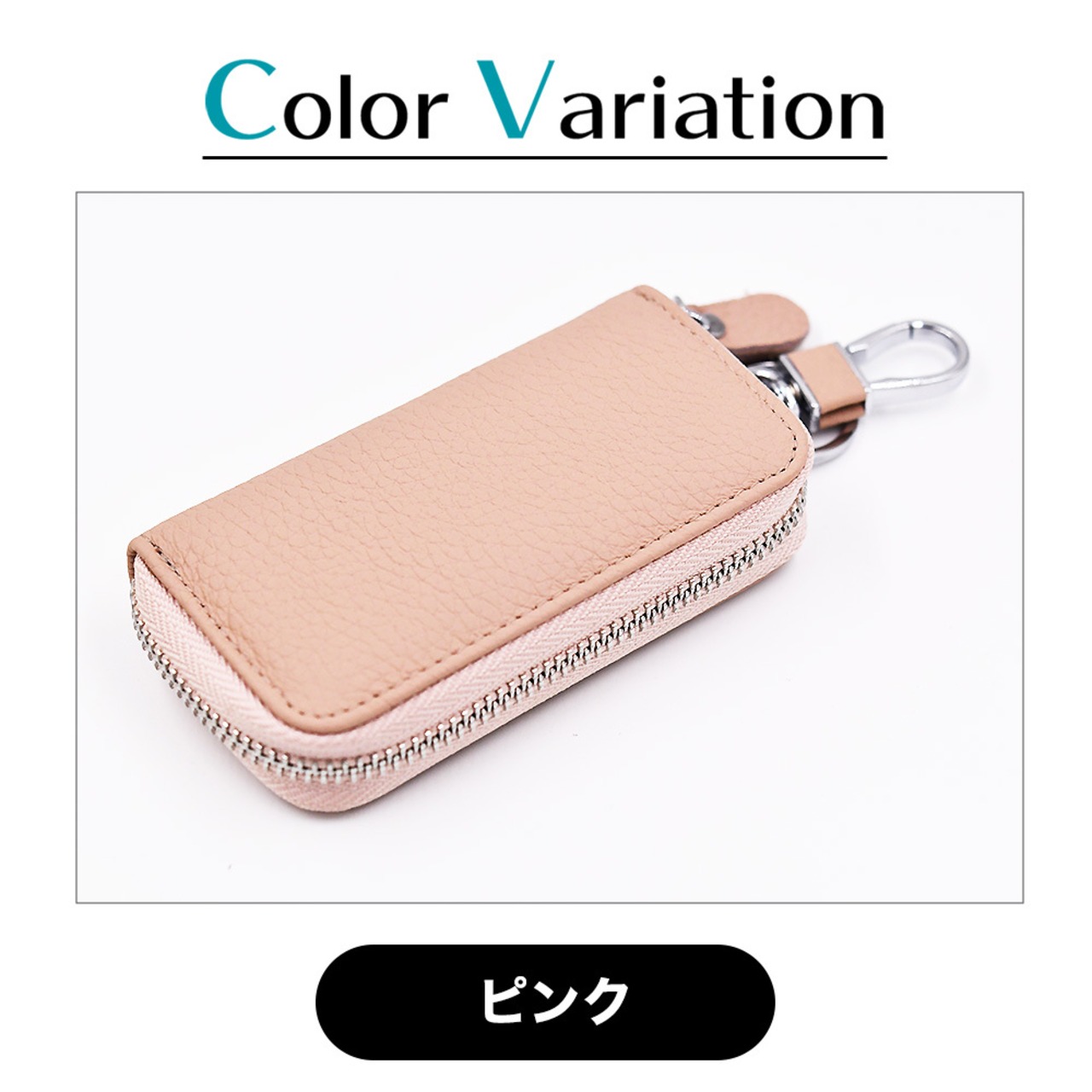 多収納 レザー キーケース カラビナフック付き 本革 カード収納できる ブラック ピンク ベージュ キーリング付 チェーン付き 黒 牛革 きーけーす スマートキー取り付け 鍵入れ メンズ レディース
