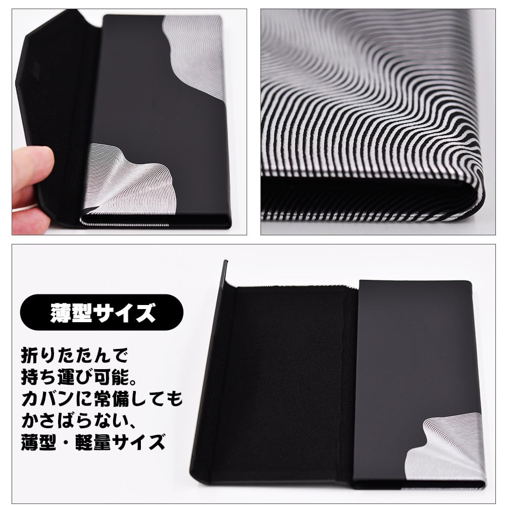 使わない時は薄型で持ち運べる折りたたみ式のメガネケースです。
