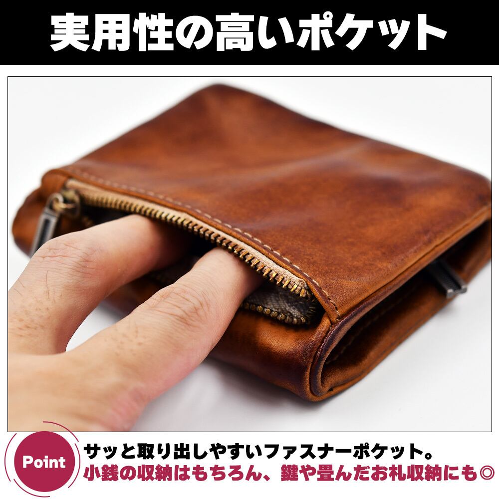 オイルレザー ウォレット 本革 二つ折り 財布 キャメル ブラウン 無地 さいふ 軽い 男女 茶色 2つ折り サイフ ミニマル マグネットなし スナップボタン コンパクト ICカード収納可能