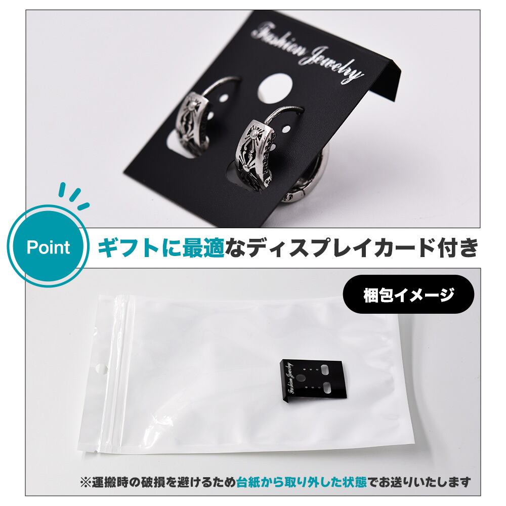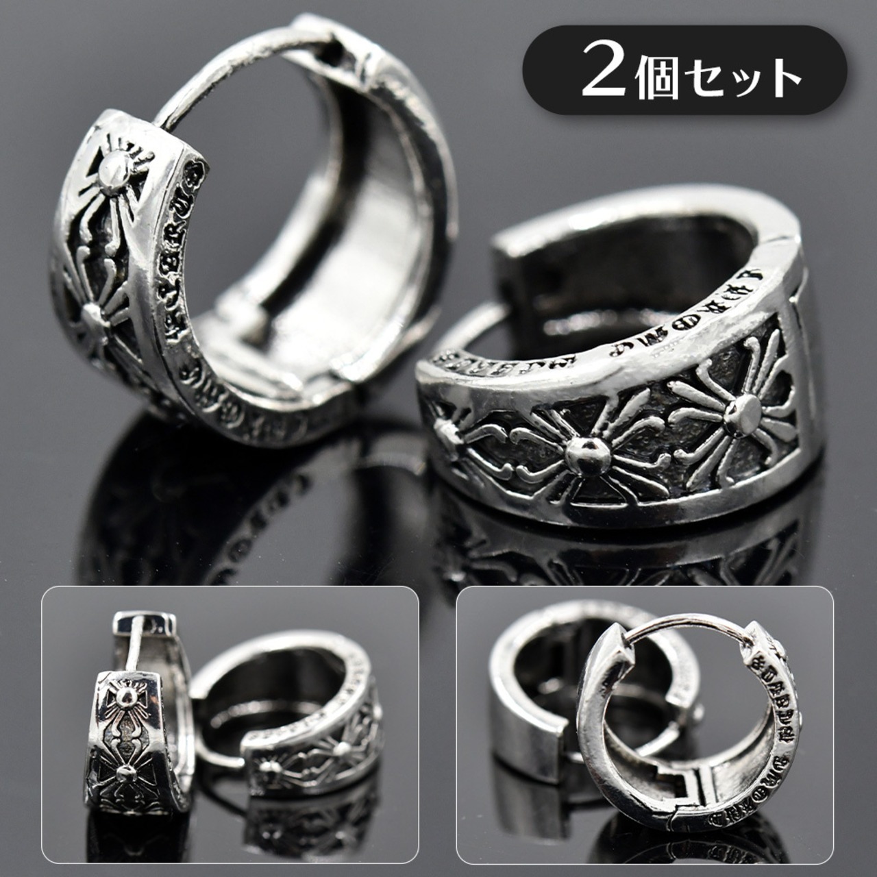 2個セット フープピアス クロスモチーフ 花十字 重厚感 中折れ式 両耳セット ぴあす シルバー 2個1組 ギフト ストリート メンズ ロック パンク ストリート系 アクセサリー